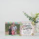 Espalhe sua alegria de feriado para amigos e família começando com este cartão com fotos único de Ornaments capríticos e Mittens de Natal com um fundo branco com texto que lê Felizes Feriados e Sábios Saudações com um quadrado de canto arredondado com texto multicolorido que lê Nós Desejamos Um Feliz Natal, ornamentos de Natal, uma corda de mitenes, e áreas que você pode adicionar seus primeiros nomes, sobrenome, o ano atual e sua foto!