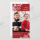 Flocos de neve caídos enquadram sua foto sobre um fundo de escarlate neste cartão com fotos de férias sazonal. Excelente para qualquer feriado que você comemorar. Mude a mensagem de feriado para se adequar. Disponível em cores alternativas com rótulos, adesivos, cartões de saudação, envelopes e selos postais correspondentes.
