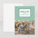 Na moda e moderna tendência Cartão com fotos de férias com triângulos modernos com um simples fundo de triângulo geométrico em verde e branco. Este elegante e moderno convite para cartões com fotos pode ser facilmente personalizado com a sua própria foto de família e com a saudação personalizada de Natal. Localize mais opções de personalização clicando em Personalizar. Fotografia © Storytree Studios, Stanford, CA