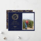 Ouro elegante monograma da pinheira de inverno, cartão com fotos festivo em azul festivo. Recursos de placa que correspondem ao padrão de ouro e várias linhas de modelo para sua saudação personalizada.