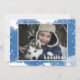 O na moda e o Cartão com fotos de Natal bonitinho do Chanucá é perfeito para todos os seus amigos e família nesta temporada de férias. Possui nuvens de aquarela azul com estrelas brancas e flocos de neve em ambos os lados. Personalize o texto com seu nome de família e o ano e troque a foto por uma foto de seus filhos, animais de estimação ou de toda a família.