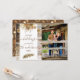Cartão com fotos Rustic Country Wood Pinecone White Holiday. Este belo design apresenta galhos de aquarela e pinecones com um belo fundo de madeira rústica. O dorso tem um lindo padrão de neve contra o marrom. Este design pode ser totalmente personalizado clicando em "personalizar este modelo". Basta adicionar seus próprios detalhes personalizados.