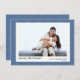 Deseje aos amigos e à família um Feliz Natal com este cartão bonito com um simples padrão de neve azul e branca, personalizado com sua foto, saudação e nome.