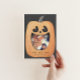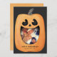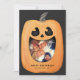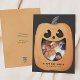 Cartão com fotos de Halloween bonito com dentro de fotos e uma abóbora laranja Jack O Lanterna.