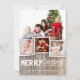 O fundo de madeira rústico, resistido e a mistura lunática de tipografia ajustam o palco para uns cartões de natal brincalhão do país para a família e os amigos. Com sala para uma multi colagem da foto de sua família, este design molda três fotos menores e uma grande foto com uma beira da grão de madeira simulada na parte inferior e um conhecimento pequeno dos flocos de neve brancos nas bordas. Adicione uma fita bonito através do furo na parte superior da forma do Tag para um olhar realmente especial!