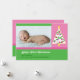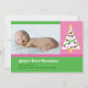 Cartão com fotos bonito e colorido de menina. Apresenta uma árvore de Natal branca numa paleta cor rosa e verde com acentuações brilhantes. Moderno e elegante. Adicione a sua própria imagem e texto. Excelente para o Primeiro Natal do Bebê. Também pode ser personalizado para uma placa familiar.