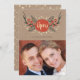 Um cartão de férias vintage e rústico com galhadas ilustradas, folhas de pinheiro, estrelas e bagas em uma paleta de cor quente sobre um fundo de papel kraft com uma saudação de "torcida". PARA OBTER OS MELHORES RESULTADOS DE IMPRESSÃO, ESCOLHA UM PAPEL BRANCO, DE MODO QUE A IMAGEM DO PAPEL KRAFT APAREÇA CLARAMENTE E VERDADEIRAMENTE A COR.