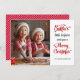Um cartão de saudação de fotos de Natal giro com sua própria foto favorita, este design tem texto vermelho e preto com os destaques da fonte do script de pincel dando-lhe um retrato. A design traseira é um padrão de listras brancas e vermelhas. Carregue a foto desejada no lugar da foto de exemplo mostrada no modelo de design e personalize com seu nome de família ou outro texto desejado.