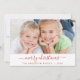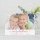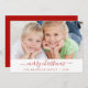 Feliz Família de Natal com Crianças Feriados Manhã com Roteiro Vermelho e Cartão com fotos Branco. A foto e o texto deste script tipografia manuscrito pode ser atualizado e personalizado com sua foto e seu nome de família.