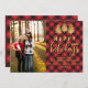 Cartão com fotos de Natal Feliz Dourado da Xadrez de Buffalo. Belo cartão de festas de família com sotaque de árvore de natal dourado. Personalize o design personalizado com sua própria saudação e nomes de família.