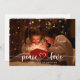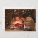Este é um clássico e elegante cartão de Natal perfeito para celebrar as festas. A frente do cartão tem uma foto, um roteiro de paz e amor com um coração elegante no meio, em vez do sinal de 'e'. A parte traseira do cartão tem uma foto adicional e sua mensagem personalizada. Envie alegria aos seus amigos e familiares com suas fotos e desejos pessoais. Se você precisar de alterações no design, como cor, texto ou fonte; entre em contato conosco em seamistmail@gmail.com. Adoramos fazer parte de suas memórias felizes.