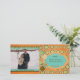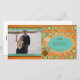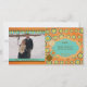 Espalhe sua alegria de feriado para amigos e familiares começando com este cartão com fotos único de Natal Snowball Whimsey apresentando um fundo laranja com bolas de neve e flocos de marrom, azul e círculos de amarelo, azul e amarelo/verde, ornamentos pendurados, e áreas onde você pode adicionar seus primeiros nomes, sobrenome, o ano atual e sua foto!