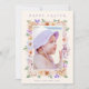 Cartão de saudação do felz pascoa com design floral botânico em cores pastel claras, cor rosa, púrpura, amarela e pêssego. Personalize o cartão de saudação com sua própria foto e texto!