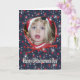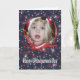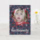 Estrelas vermelhas, brancas e azuis sobre fundo denim com estrutura de fita para cartão com fotos.