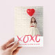 Cartão de Dia de os namorados impresso personalizado de barato personalizado com fotos e texto. Este design moderno minimalista apresenta a inscrição manual da cor vermelha da água, que diz XOXO. A mensagem abaixo diz "Feliz dia de os namorados de (seu nome de família)" ou você pode personalizá-la com sua própria mensagem especial. O lado inverso tem um padrão cardíaco vermelho e branco, escovado e bonito. Use as ferramentas de design para alterar a cor do plano de fundo, adicionar mais fotos, editar o texto e personalizar as fontes e cores para criar seus próprios cartões com fotos de Namorados exclusivos para amigos e familiares.