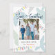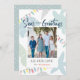 Este cartão com fotos costeiro de férias "mares e saudações" apresenta conchas, uma tartaruga marinha/honu e estrelas-do-mar em tons azuis e verdes pastéis. O verso apresenta um fundo azul-turquesa claro com padrões de neve. Personalize-o para as suas necessidades. Você pode encontrar produtos correspondentes na minha loja.