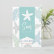 Este cartão com fotos chic costeiro "mares e saudações" de feriado apresenta uma fita leve de chá, conchas, tartaruga/honu do mar e estrelas-do-mar em tons azuis e verdes pastéis. O verso apresenta sua foto. Personalize-o para as suas necessidades. Você pode encontrar produtos correspondentes na minha loja.