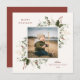 Quadro de Folhagem Botânica Festiva de Férias, cartão com fotos plano. Características, tipografia de cor vermelha rústica e suporte de cor sólida correspondente.