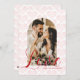 Este design apresenta um cartão com fotos Love - temed Dia de os namorados in com fotos em arco em um padrão cardíaco de amor em cores rosa, branca e vermelha. Este cartão pode ser facilmente editado com sua foto pessoal e seu nome de família.