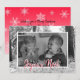 Cartões de foto de Natal Joyeux Noël com fundo bonito de neve. Sinta-se livre para alternar a imagem de fundo, se quiser. Carregue também a sua foto favorita da família de feriados. As costas são douradas com flocos de neve brancos com sua própria mensagem de Natal personalizada.