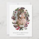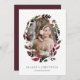 Os cartões de natal botânicos elegantes apresentam sua foto favorita cercada por uma coroa oval rústica de folhagem verde e marrom e flores escamoteadas. Personalize com sua saudação personalizada e nomes abaixo; mostrados com "Saudações da Estação".