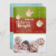 Verde limão e Vermelho Retroram sua foto na Feliz frontal e Brilham Três Enfeites de natal Aqua Turquoise Red Brown e Linen Retro e Personalizado com seu Cartões de foto de Natal de Nomes