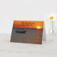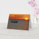 Este belo pôr do sol, com o céu laranja vívido, a silhueta de um barco de pesca, e o reflexo do sol na água é um cartão dramático e comovente para expressar a vossa simpatia. Se desejar, você pode modificar facilmente o texto na frente e no dentro.