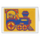Papais noeis Vive! Papais noeis Treinam cartões de Natal e outros presentes de Natal apresentam uma única criação de Papais noeis Keller Kard em seu trem azul e vermelho contra um fundo amarelo alaranjado e segurando uma bandeira com as palavras, Papais noeis Lives. Decorra a sua casa, as caixas de correio do seu amigo ou encha essas caixas debaixo da árvore, neste feriado, com um impressão de corte manual de linóleo vintage. Papais noeis Vive! Prove isso aos seus amigos e família com nossos Papais noeis originais Train!