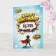Cartão Comic Style Superhero Boy's Name Birthday