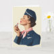 Cartão Comissária de Voo Antiga Aplicando Brilho Labial