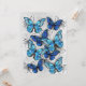 Composição vertical de borboletas de morfo realistas, azuis e brancas sobre fundo texturizado de cinzas. Borboleta azul Morpho.