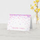 Tons de confete rosa e roxo caem sobre este cartão de Obrigado fofo e feminino. Perfeito para qualquer ocasião.