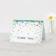 Cartão de agradecimento com confetes de cor primária, fofo e simples para qualquer ocasião! As cores incluem vermelho, azul, amarelo, verde e laranja