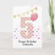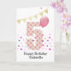 A colorful pink 5th birthday card for girls, which you can personalize with her name. The front of this colorful 5th birthday card for her features the number five in a pink polka dot with a pink balloon ready to float away.The background has some colorful confetti and a soft gold bunting banner at the top.The inside message can be easily personalized if you wanted.