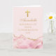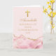 Um agradável cartão de congratulações de confirmação personalizado com rosa elegante e ágata dourada decora esta bonita celebração de cerimônia cristã para meninas. Personalize com um nome e suas bênçãos sob a bela cruz.