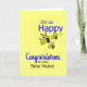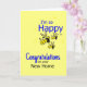 Congratulations on your New Home - I'm so Happy for you all text in blue and black with 3 cartoon bee's on a yellow background.