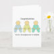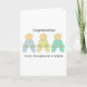 Three sweet, smiling babies and the words 'Congratulations, you're Grandparents to triplets'.