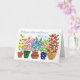 Um cartão de recuperação rápida de cirurgias traseiras com uma fileira de potes de flores coloridas, de uma colagem de papel pintada à mão por Judy Adamson. Por favor, entre em contato comigo na minha loja se você quiser que o texto do cobrir frontal seja alterado e o dentro seja vazio para a sua própria mensagem.