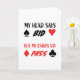 Engraçado design de jogo de cartas-ponte para um jogador duplicado que adora jogar jogos de cartas todos os dias. Perfeito para uma convenção avançada e difícil de licitação e para um jogador de cartas. Design de ponte duplicada para aqueles que gostam de jogar cardgames de ponte. Você está procurando uma design engraçada para si mesmo ou para seu parceiro de ponte? Então pegue este design de ponte que diz que a minha cabeça diz "Bid", mas o meu coração diz "Passar".