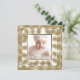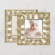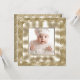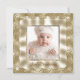 Convite de foto para batismo de bebê com renda dourada e babados de marfim.