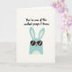 Designed with a soft, modern look, this Easter card features a stylized bunny in robin’s egg blue lounging across the lower half of the front 🐰. Pale blue accents fill the long ears and a small belly patch, while the simple shapes give it an easy, friendly charm. Dark rectangular sunglasses sit high on its face, with thin white reflections that suggest bright spring light and a confident, flirty attitude. Beneath the shades, a tiny black “x” nose and mouth adds a relaxed expression, like it’s sharing an inside joke with someone special 🐇. Centered above the bunny, the message “You’re one of the coolest peeps I know” appears in casual black lettering that feels like a note from a close friend. The background stays off-white and uncluttered, keeping the focus on the blue character and the dark text. A few narrow white highlight lines glint across the sunglasses, standing out against the deep black frames. Share warm Easter sentiments with someone you care about.