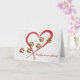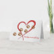 Cartão Coração vermelha com estampas de pata de cão