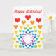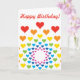 Cartão de aniversário animado com padrão cardíaco moderno em cor arco-íris. Impresso em todos os lados.