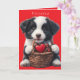 Um filhote de Collie Bonito segurando um cheio de bonito corações de chocolate vermelho para o Dia de os namorados. O dentro do cartão diz "Eu te amo mais do que os pinos" Personalize com seu nome e saudação.