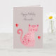 pedra cinza gato rosa com corações cartão personalizado de aniversário feliz