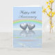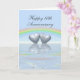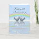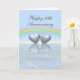 Cartão com minha imagem de dois corações de lata ou alumínio flutuando na água sob um arco-íris.