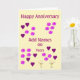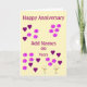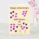 Adicione nomes e quantos anos no verso do cartão e seus nomes e deles dentro, adicione à mensagem, ou mude se desejar. Um cartão bonito com corações roxos profundos e flores vermelhas, e duas taças de champanhe.
