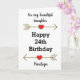 Um cartão de aniversário de 24 anos vermelho e dourado para filha, neta, sobrinha, etc. Você pode personalizar facilmente a frente do cartão com o nome dela. A mensagem da placa dentro e a parte traseira da placa também podem ser personalizadas. Este cartão de aniversário personalizado de 24 anos faria uma única manutenção de aniversário para ela.