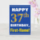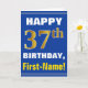 As características deste design aniversário-temáticos simples do cartão um desejo morno do aniversário gostam "do 37th ANIVERSÁRIO FELIZ, nome!" na parte dianteira, no texto corajoso em um azul coloriu o fundo. O número do aniversário tem o falso/imitação ouro-como o olhar da coloração. O nome na parte dianteira pode ser personalizado. As características internas uma mensagem do aniversário que possa ser personalizada. Um cartão como este poderia ser uma maneira do divertimento de entregar desejos do aniversário a alguém que está comemorando seu aniversário do sétimo trinta. [~Z0000278]