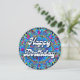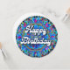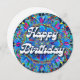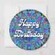 Este cartão ocular de aniversário dá certamente uma impressão, com o seu padrão colorido no estilo caleidoscópio. O cartão de rancho apresenta a saudação "Parabéns" em tipografia retrógrada branca. Um design legal e divertido para todas as idades.